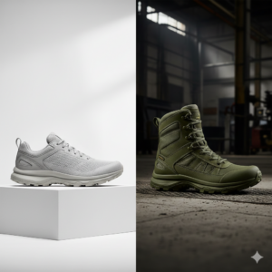 Em mochilas táticas e bolsas para operações especiais, o CORDURA 1000 oferece a resistência necessária para transportar equipamentos pesados sem comprometimento estrutural. No universo dos calçados esportivos de performance, o CORDURA 1000 marca presença em categorias que demandam resistência extrema. Botas de alpinismo, calçados para mountaineering e modelos para esportes de aventura em condições severas se beneficiam da durabilidade superior do material. Além da função protetora, o visual característico do CORDURA 1000 — com sua trama mais aparente e aspecto robusto — tornou-se um elemento de design valorizado. Marcas de calçados esportivos premium incorporam o tecido não apenas pela resistência, mas também pela identidade visual que transmite autenticidade técnica e durabilidade.